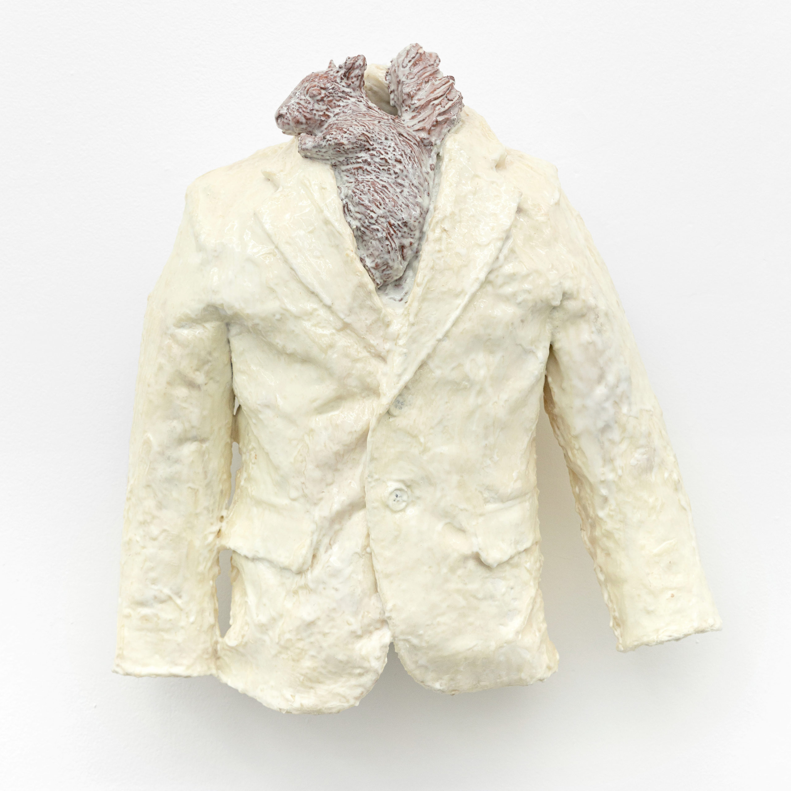 Edi Dubien, Casque avec écureuil, 2023 · Ceramic (sandstone) · 45 × 18 × 29 cm