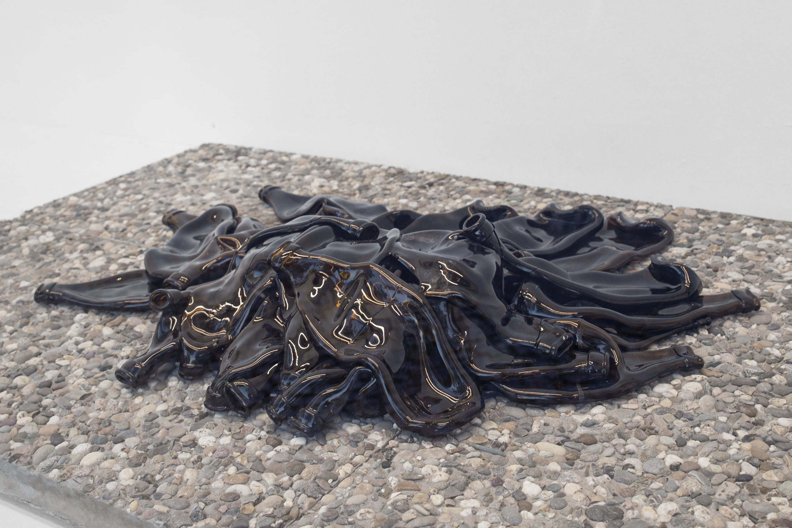 Eric Meier, Social warming III, 2025 · Fused beer bottles · 17 × 41 × 33 cm