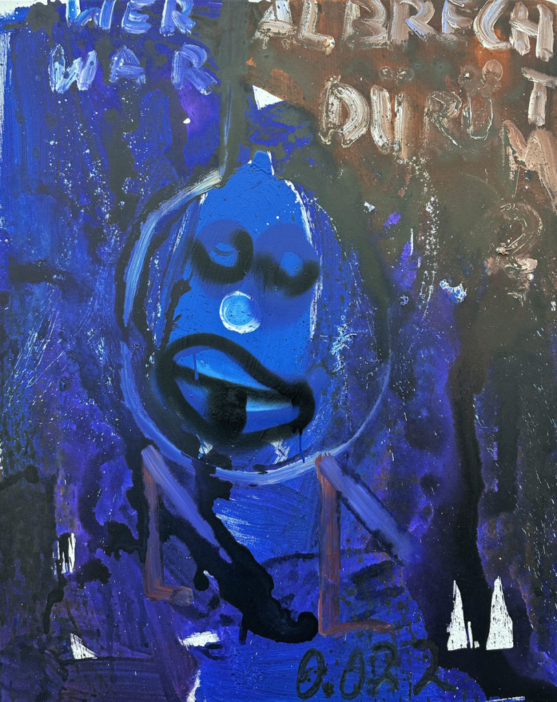 David Medalla, Portrait of Adam Nankervis at Wielandstrasse 18, Friedenau, 1998 · Oil on canvas · 150 × 150 cm