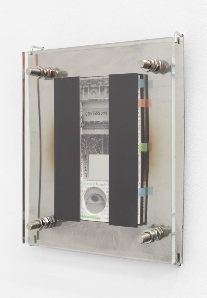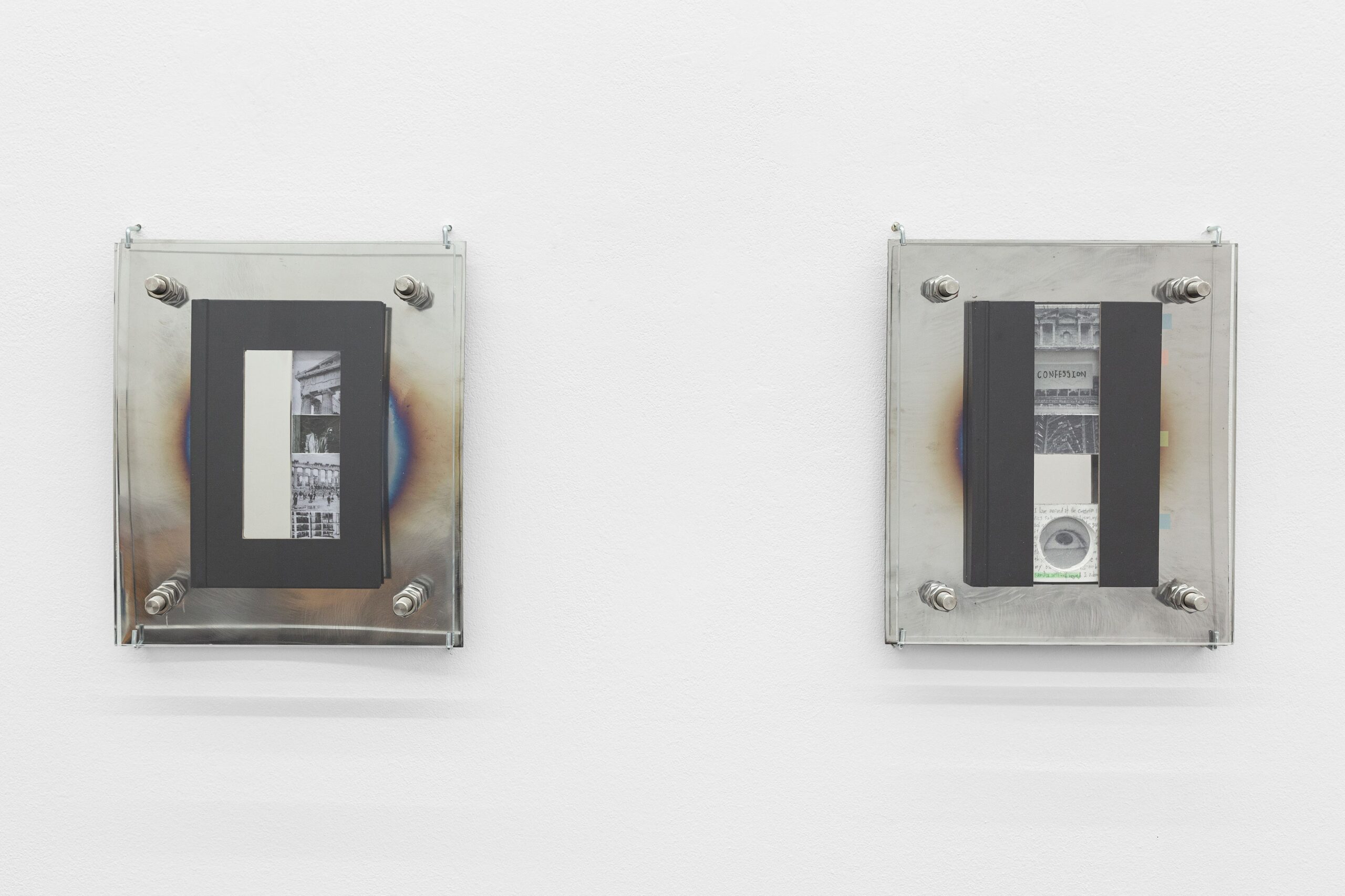 Plexiglass, hand polished steel, stainless steel, collaged diary · 32 × 27 × 7 cm each