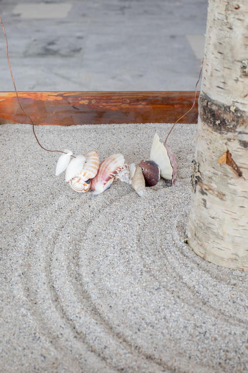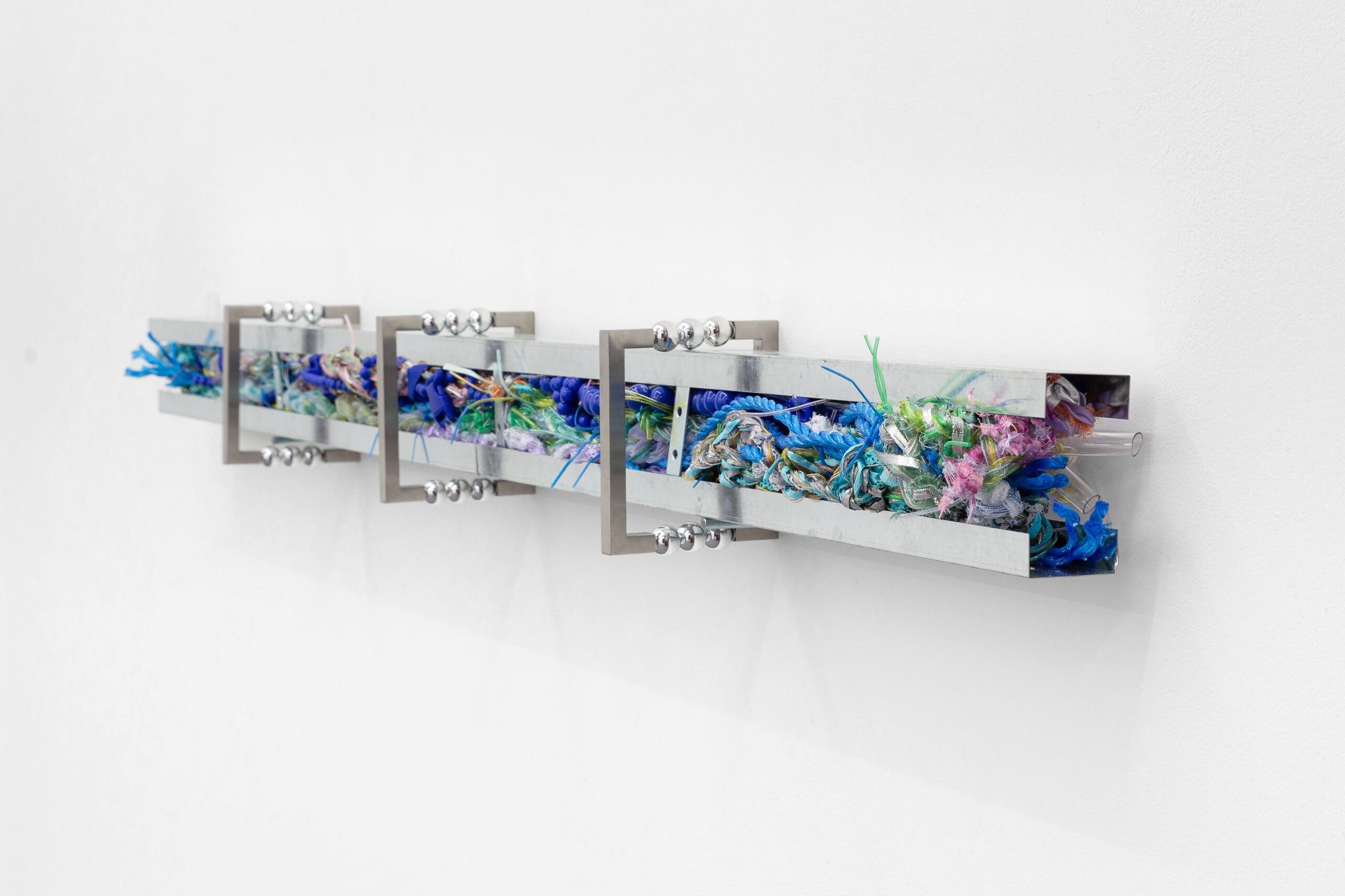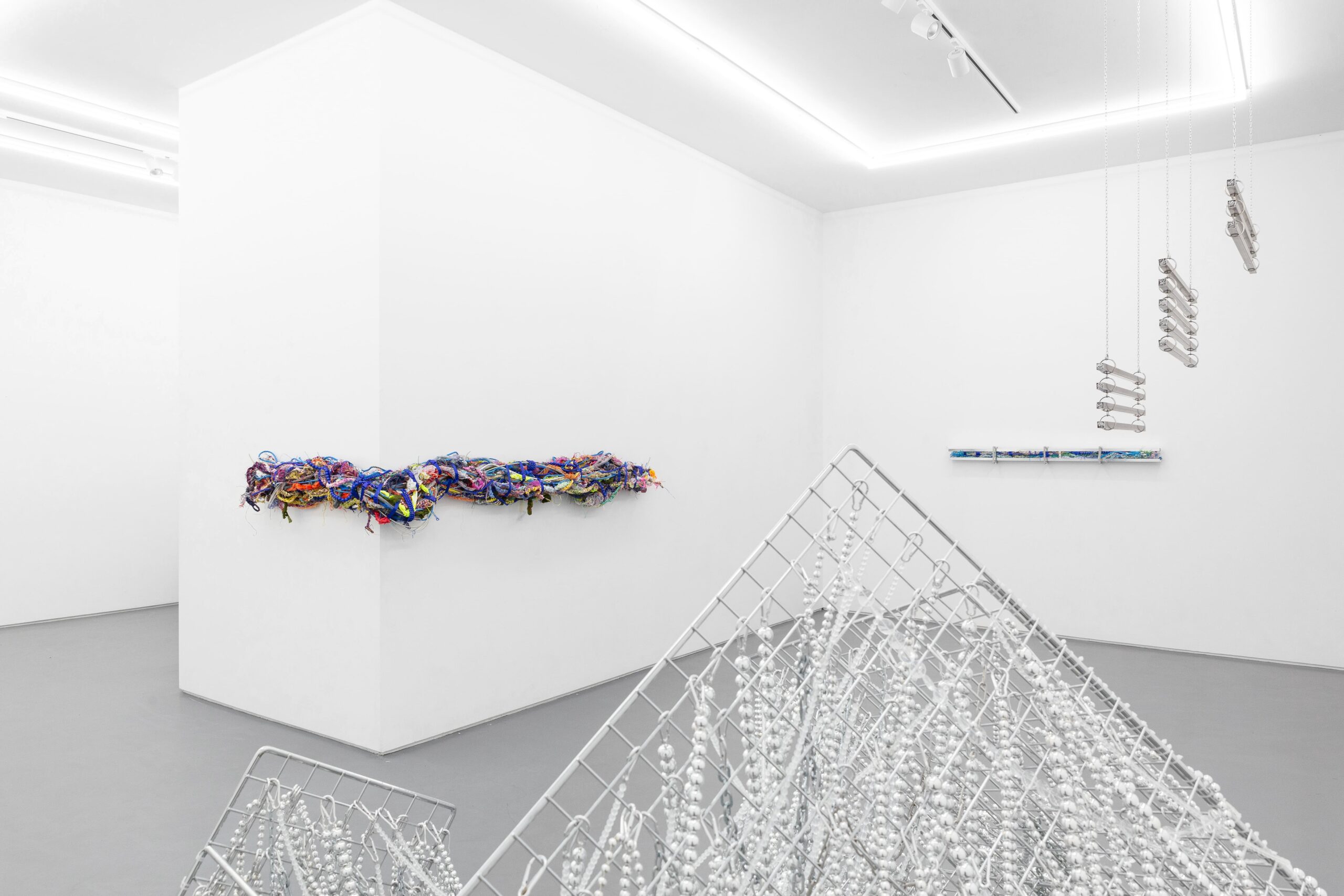Jusun Lee, Frameworks Vol. II, 2026 · Stainless steel, metal chains, acrylic breads