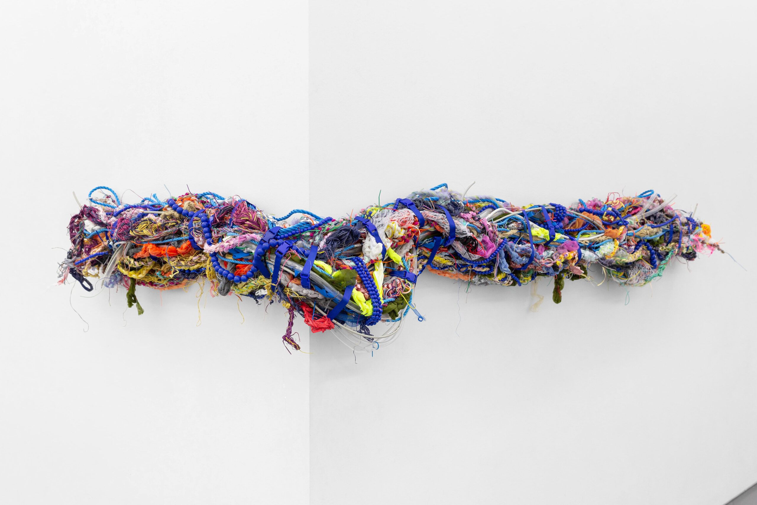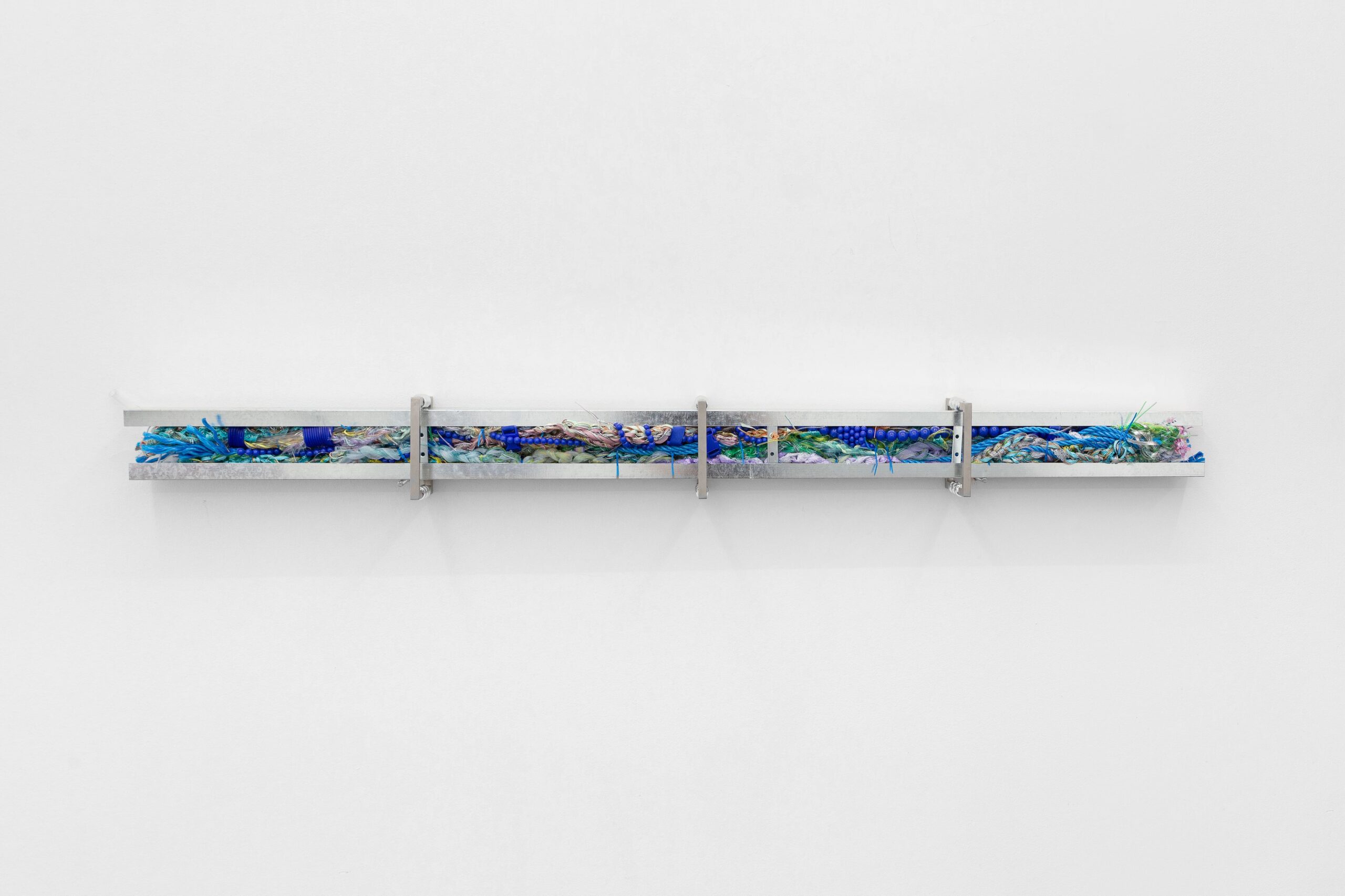 Jusun Lee, Span, 2026 · Stainless steel, PVC pipe, plastic cord · 40 × 315 × 20 cm, dimensions variable