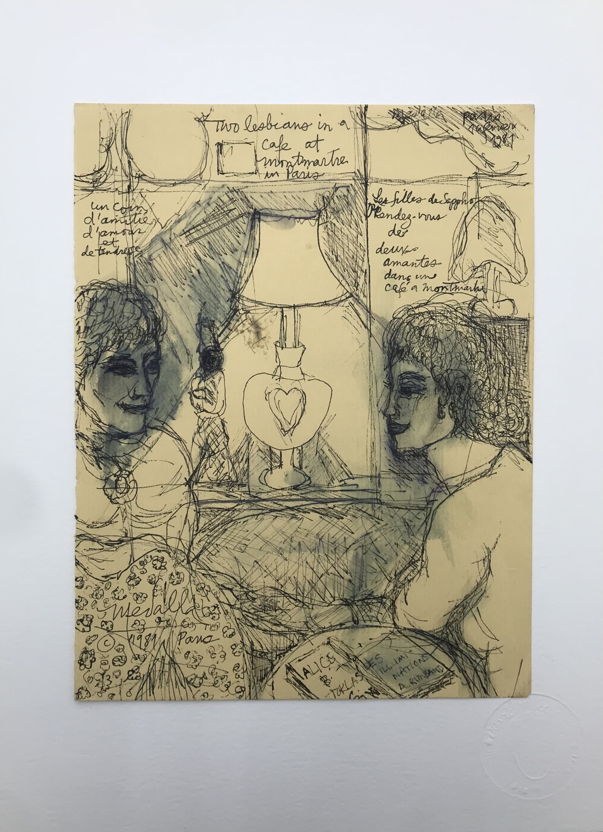 David Medalla, Two lesbians in a Café at Montmartre in Paris, 1981 · pen on paper, 27 × 20.5 cm