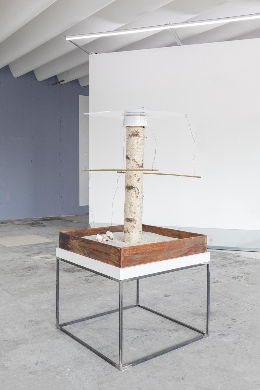 David Medalla, Sand Machine – Baguio 1, 1963/2017 · wood, brass, sand, bamboo, acrylic sheet, glass beads and other materials, 150 × 60 × 60 cm